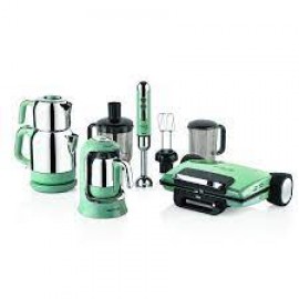 - 4 parça Çaytema Elektrikli Çaydanlık 0.9 lt / 1.7 lt1600 Watt - 2 parça Kahvekolik Türk Kahvesi Makinesi4 fincan kahve kapasitesi400 Watt- 1 parça Tostema Tost Makinesi1800 Watt- 7 parça Mia Mega Blender Seti 1500 ml kapasiteli doğrama haznesi1000 ml kapasiteli çırpıcı haznesi850 Watt4 bıçaklı..