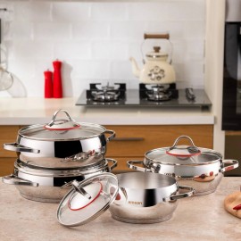 8 Parça Steama Tencere Seti3 Parça Steama Cezve Takımı4 Parça Steama Çaydanlık Takımı Tencere Ölçüleri:16x8.0 cm / 1.6 lt20x10 cm / 3.0 lt24x12 cm / 5.5 lt24x7 cm / 3.0 lt Cezve Ölçüleri:2-3-4 FincanÇaydanlık Ölçüleri:0.9 lt / 1.6 lt18/10 Cr-Ni paslanmaz çelikHomojen ısı iletimi sağlayan süper capsül tabanErgonomik, el yakmayan,..